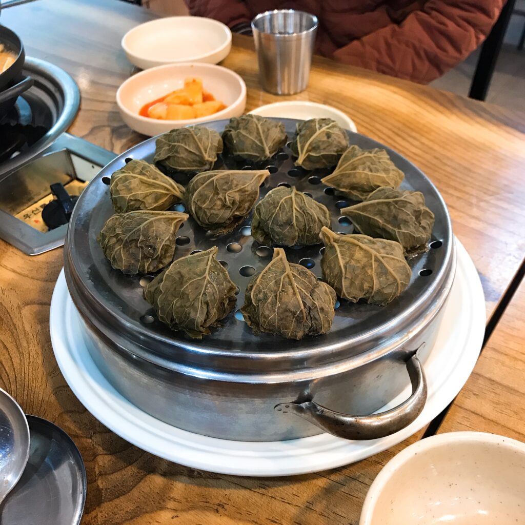 곰취 만두와 콩국수가 유명하며, 뜨끈한 두부 전골도 추천한다.